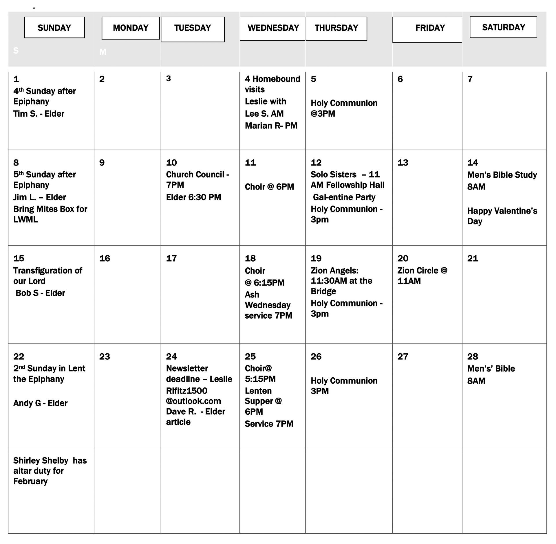 February Calendar